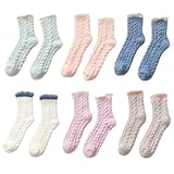 - [Contenido del paquete]: recibirás 6 pares de calcetines de forro polar coral en colores verde, rosa, azul, blanco, morado y caqui para elegir, que se pueden utilizar indistintamente y pueden...